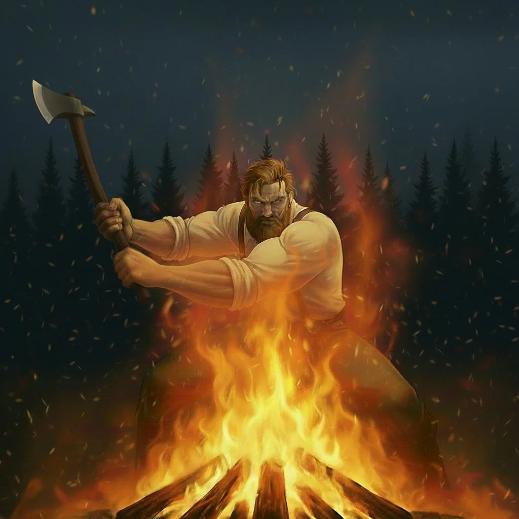 In the early 19th century, there was a man of renown in the forest lands of the Upper Midwest. He had immense size, strength, and the admiration of the people. A dutiful man, the Woodsman lived a blessed and faithful life with a young family, thriving logging business, and success throughout the region. His life was filled with joy and contentment with a future as bright as the sun... until one solemn night, evil stretched forth its wicked hand from the darkness and changed everything.